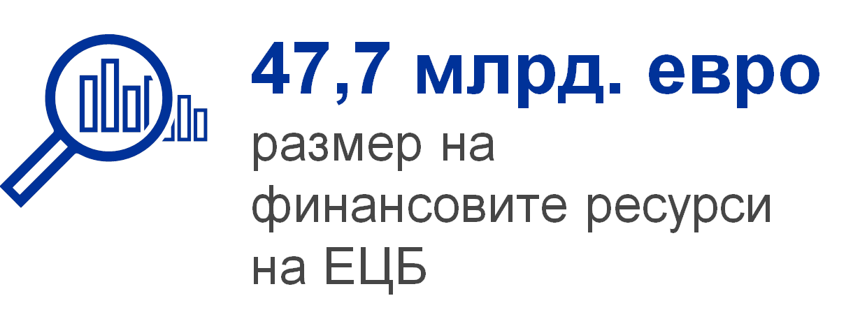 Финансовите ресурси на ЕЦБ включват капитала, общите провизии за риск, сметките за преоценка и печалбата за годината. Тези финансови ресурси i) се инвестират в активи, които генерират приходи, и/или ii) се използват за пряко компенсиране на загуби в резултат от финансови рискове. Към 31 декември 2019 г. финансовите ресурси на ЕЦБ възлизат на 47,7 млрд. евро (виж Графика 9). Тази сума е с 5,7 млрд. евро повече в сравнение с 2018 г., главно поради увеличение в сметките за преоценка вследствие на понижаването на обменния курс на еврото.