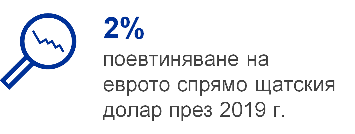 През 2019 г. стойността на портфейла от собствени средства остана практически непроменена (виж Графика 7). Този портфейл се състои основно от деноминирани в евро ценни книжа, които се оценяват по пазарни цени в края на годината.