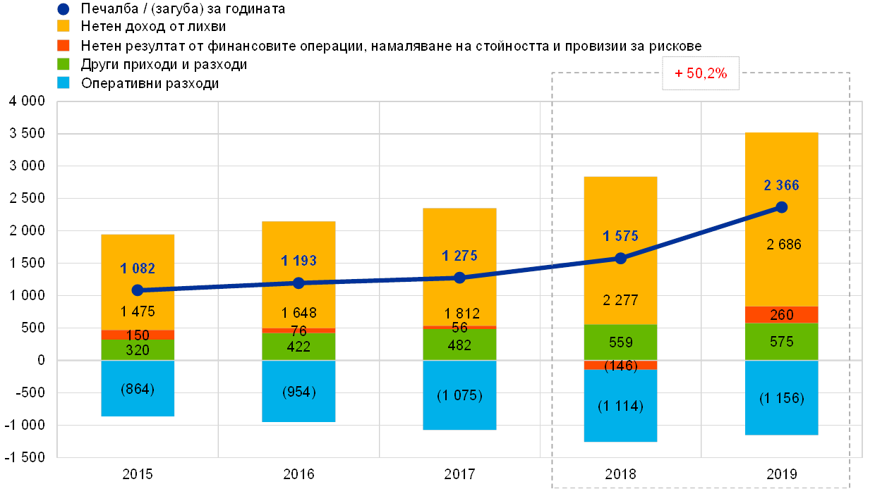 През 2019 г. печалбата на ЕЦБ възлиза на 2366 млн. евро (спрямо 1575 млн. евро през 2018 г.). Увеличението със 790 млн. евро спрямо 2018 г. се дължи на нарастване на нетния доход от лихви и на по-добри резултати от финансовите операции.