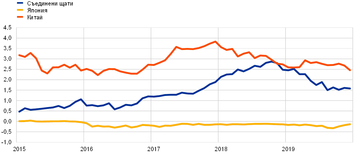 Доходност на двегодишни държавни облигации в Съединените щати, Япония и Китай