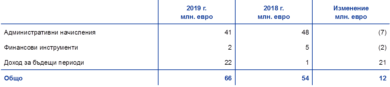 - За административни начисления и провизии се прилага минимален праг от 100 000 евро.
