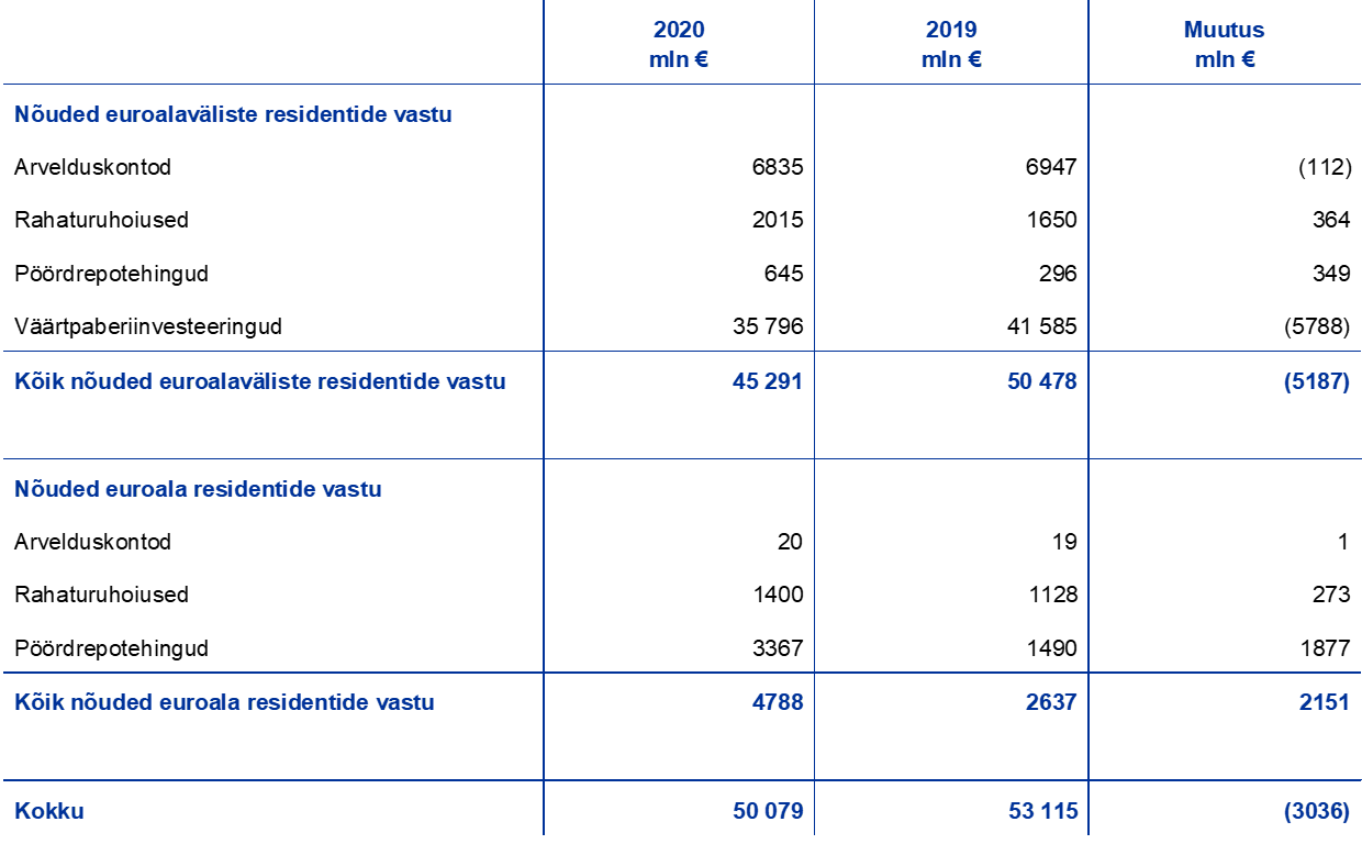 EKP välisvaluutareserve investeeritakse peamiselt väärtpaberitesse ja rahaturuhoiustesse või neid hoitakse arvelduskontodel (vt joonis 6). Selle portfelli väärtpabereid hinnatakse aasta lõpu turuhindade alusel.