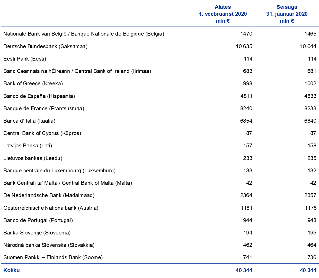 15. Vt 30. jaanuari 2020. aasta pressiteade EKP kapitali kohta pärast Inglise keskpanga lahkumist EKPSist.