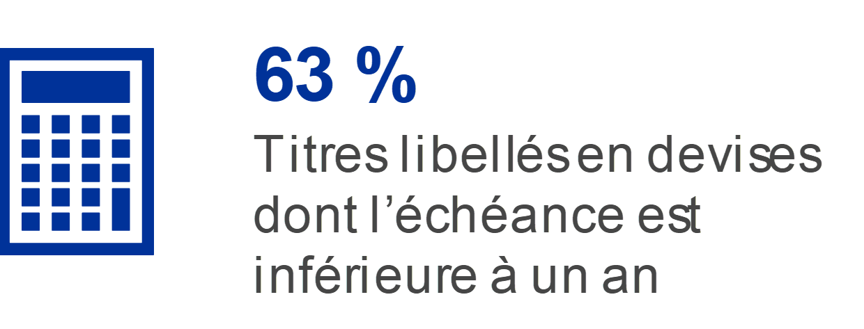 Les réserves de change de la BCE permettent de financer d’éventuelles interventions sur le marché des changes. Elles sont par conséquent gérées selon trois objectifs, qui sont, par ordre de priorité : liquidité, sécurité et rendement. C’est la raison pour laquelle ce portefeuille comprend essentiellement des titres assortis d’échéances courtes (graphique 7).