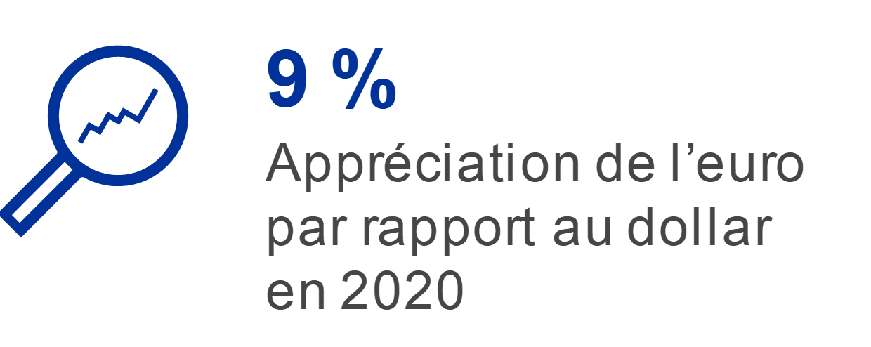 Représentant environ 76 % des avoirs de change totaux de la BCE fin 2020, le dollar des États-Unis en est resté la principale composante.