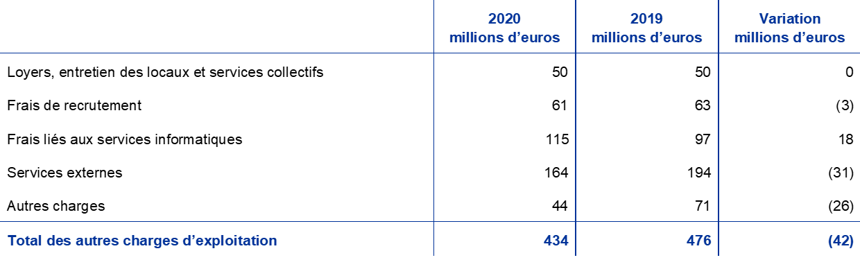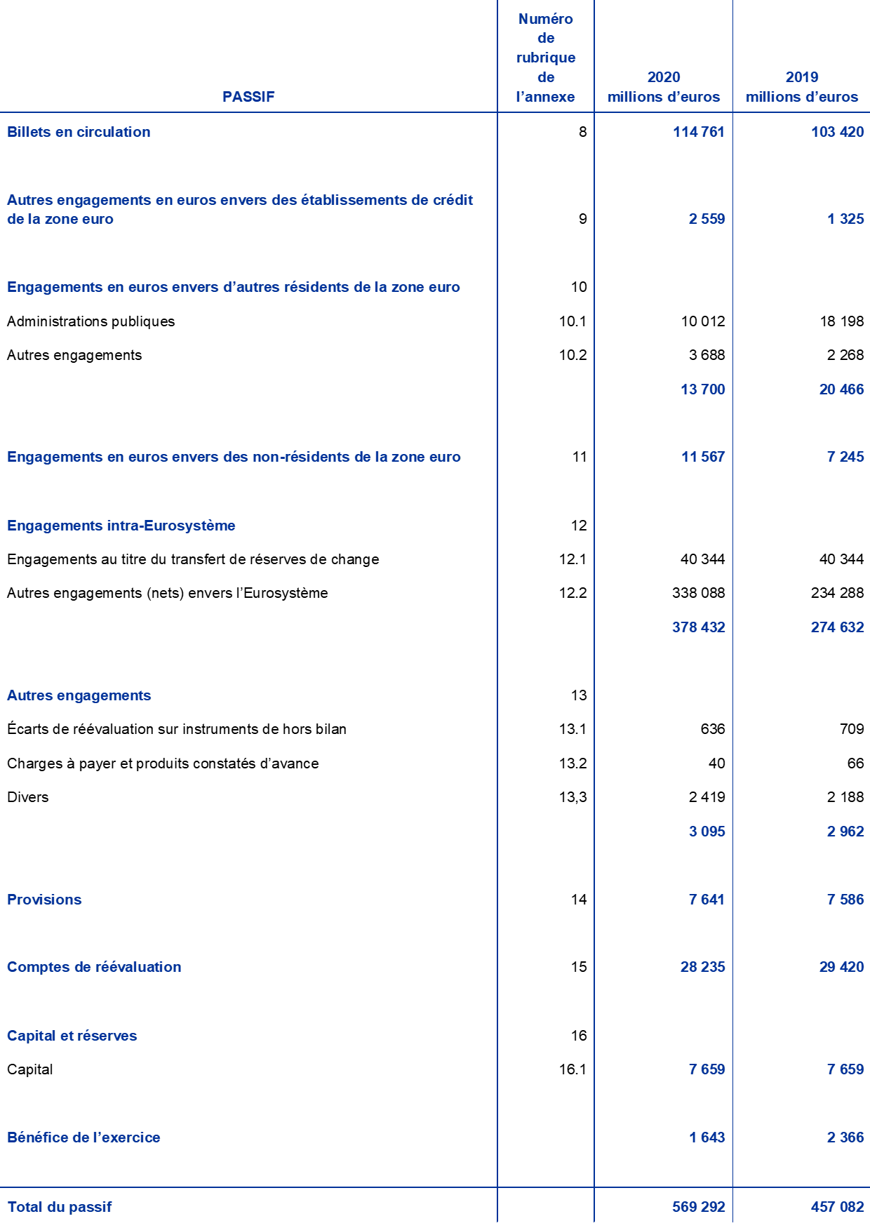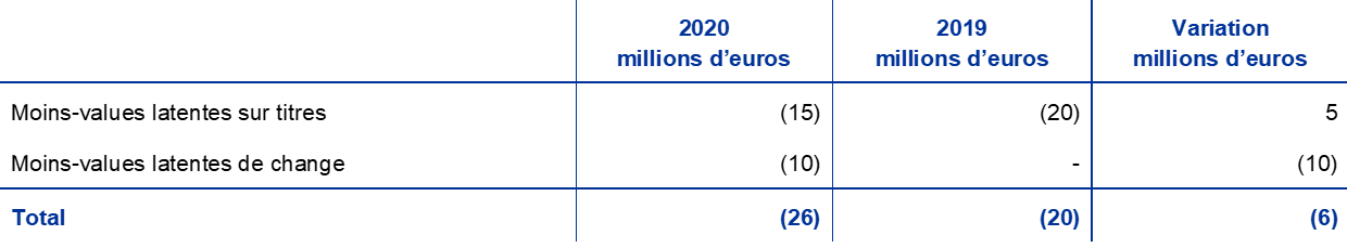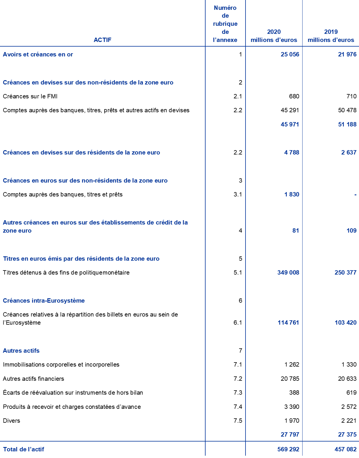 Cette annexe ne fait pas partie des états financiers de la BCE pour l’année 2020.