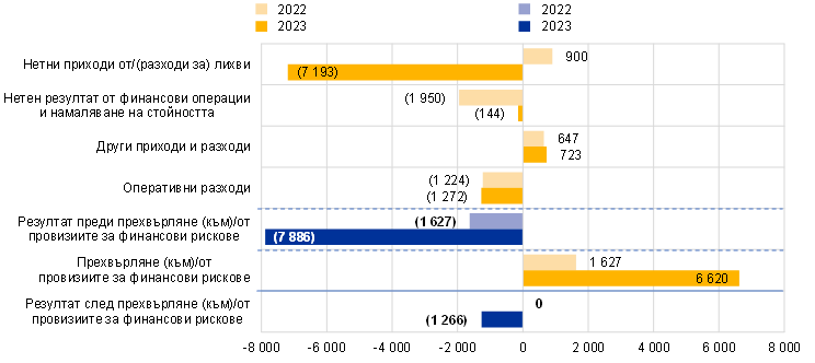 Загубата на ЕЦБ за 2023 г. след освобождаването на пълния размер на провизиите за финансови рискове възлиза на 1266 млн. евро (спрямо нула през 2022 г.). Съгласно решение на Управителния съвет тази загуба ще бъде пренесена в баланса на ЕЦБ и ще бъде компенсирана от бъдещи печалби.