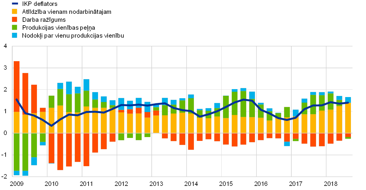 Kopējā inflācija salīdzinājumā ar iepriekšējo gadu pieauga (2018. gadā vidēji – 1.7%), lai gan tas galvenokārt atspoguļoja augstākas enerģijas cenas. Pamatinflācijas rādītāju dinamika visu gadu kopumā bija horizontāla. Taču iekšzemes pieprasījuma, darba tirgus un darba samaksas perspektīva radīja pamatu pārliecībai, ka inflācija vidējā termiņā turpinās tuvināties mūsu mērķim atbilstošam līmenim.