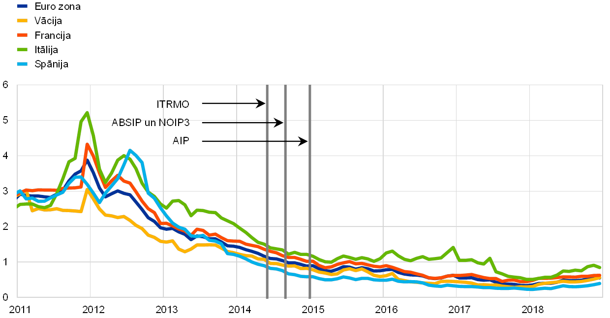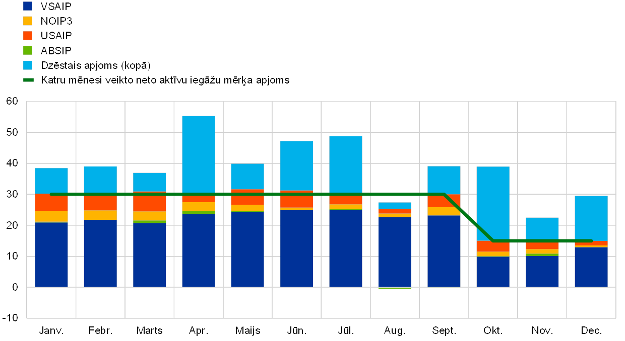 - Padome 2017. gada 19. janvārī pieņēma lēmumu, ka tādu aktīvu iegādes, kuru ienesīgums līdz dzēšanai atlikušajā termiņā ir zemāks nekā noguldījumu iespējas procentu likme, pieļaujamas tikai VSAIP ietvaros, un apstiprināja, ka NOIP3, ABSIP un USAIP ietvaros šādas iegādes nav paredzētas. Sīkāku informāciju sk. ECB tīmekļa vietnē.