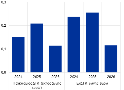 Παγκόσμιος ΔΤΚ (εκτός ζώνης ευρώ) | 4,9 | 4,1 | 3,2 | 2,8 | 5,0 | 4,4 | 3,4 | 2,9 |