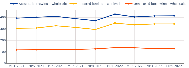 Data for weighted average rate for secured wholesale sector borrowing and lending