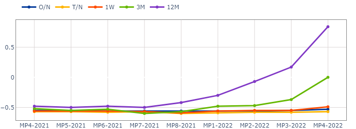 - The missing values for tenors in some of the reserve maintenance periods may be due to confidentiality requirements.