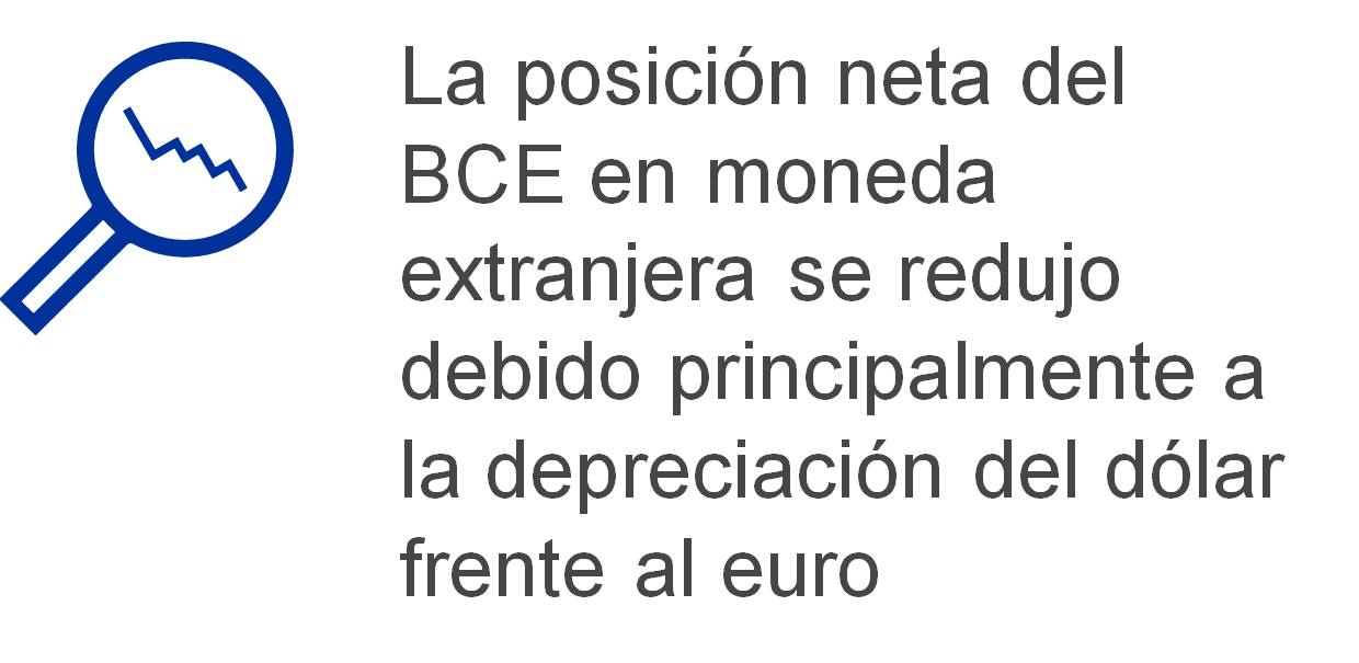 La posición neta del BCE en moneda extranjera[12] en dólares estadounidenses, yenes japoneses y renminbis chinos calculada en euros se redujo en 3,0 mm, situándose en 50,1 mm de euros (véase gráfico 5), debido principalmente a la depreciación del dólar frente al euro. La depreciación del dólar también se refleja en el descenso de los saldos de las cuentas de revalorización del BCE (véase apartado 1.3.2 Recursos financieros).