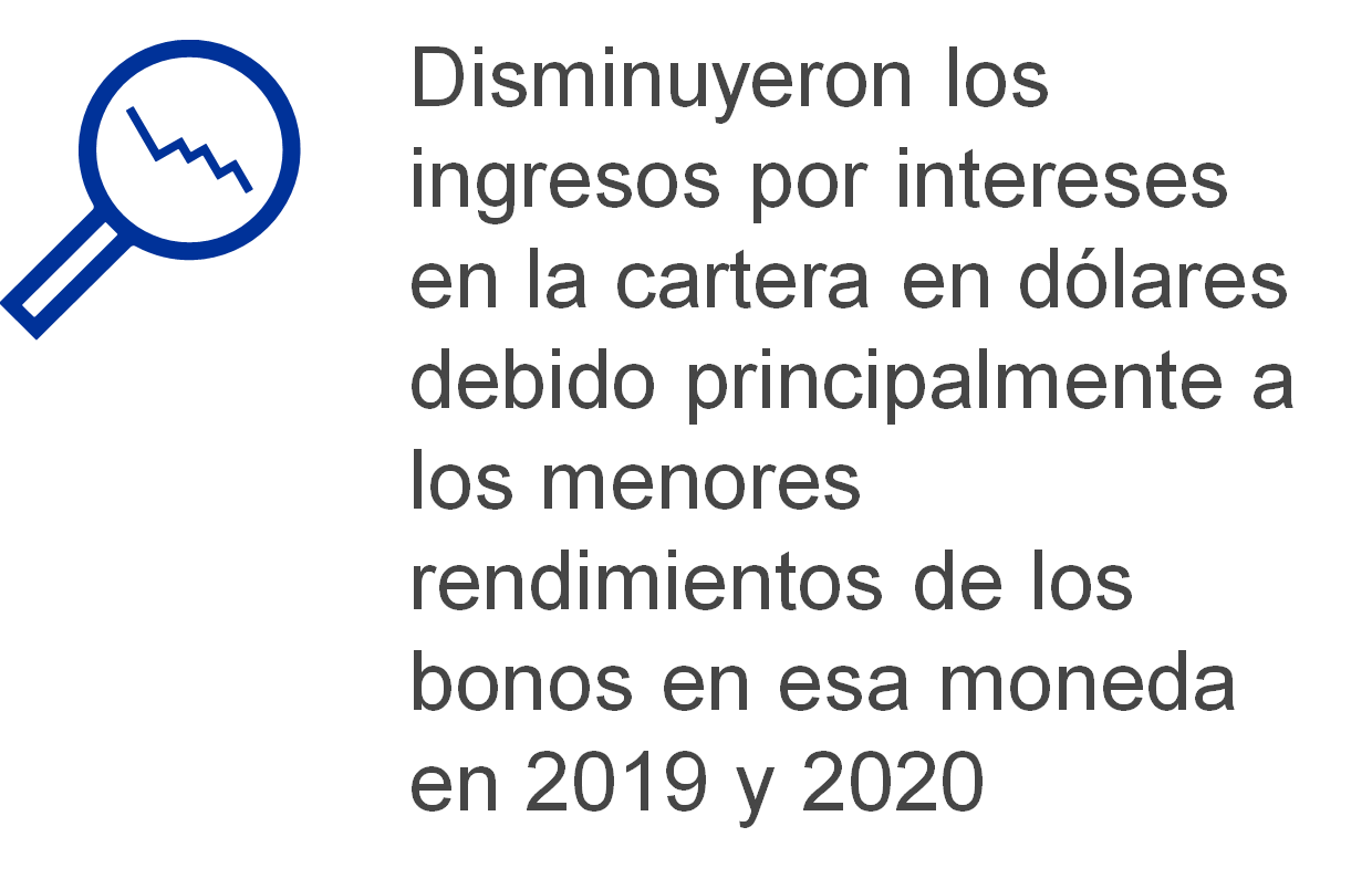 Los ingresos netos por intereses de activos exteriores de reserva disminuyeron en 577 millones, situándose en 474 millones de euros, como resultado principalmente de los menores ingresos por intereses obtenidos de los valores denominados en dólares estadounidenses. Debido a la tendencia descendente de los rendimientos de los bonos en dólares estadounidenses durante la mayor parte de 2019 y 2020 (véase gráfico 15), especialmente en vencimientos cortos, el BCE adquirió valores con rendimientos más bajos, lo que redujo el rendimiento medio de su cartera en dólares estadounidenses en comparación con el año anterior. Esto tuvo un impacto negativo en los ingresos por intereses obtenidos en esa cartera durante 2020.