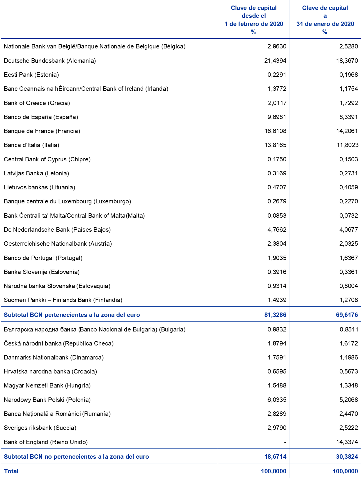 15. Véase la nota de prensa de 30 de enero de 2020 sobre el capital suscrito del BCE tras la salida del Bank of England del SEBC.