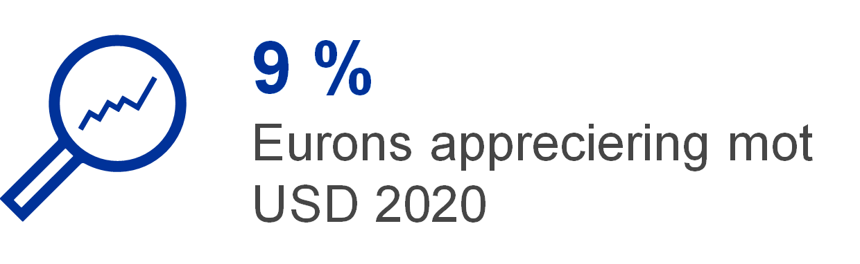 US-dollar är fortfarande den största komponenten i ECB:s valutareserv och uppgick till ca 76 procent av det totala innehavet vid slutet av 2020.