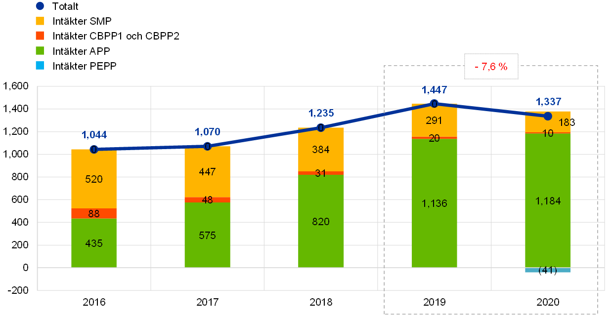 Under 2020 genererade värdepappersinnehav i penningpolitiska syften runt 66 procent av ECB:s nettoränteintäkter.