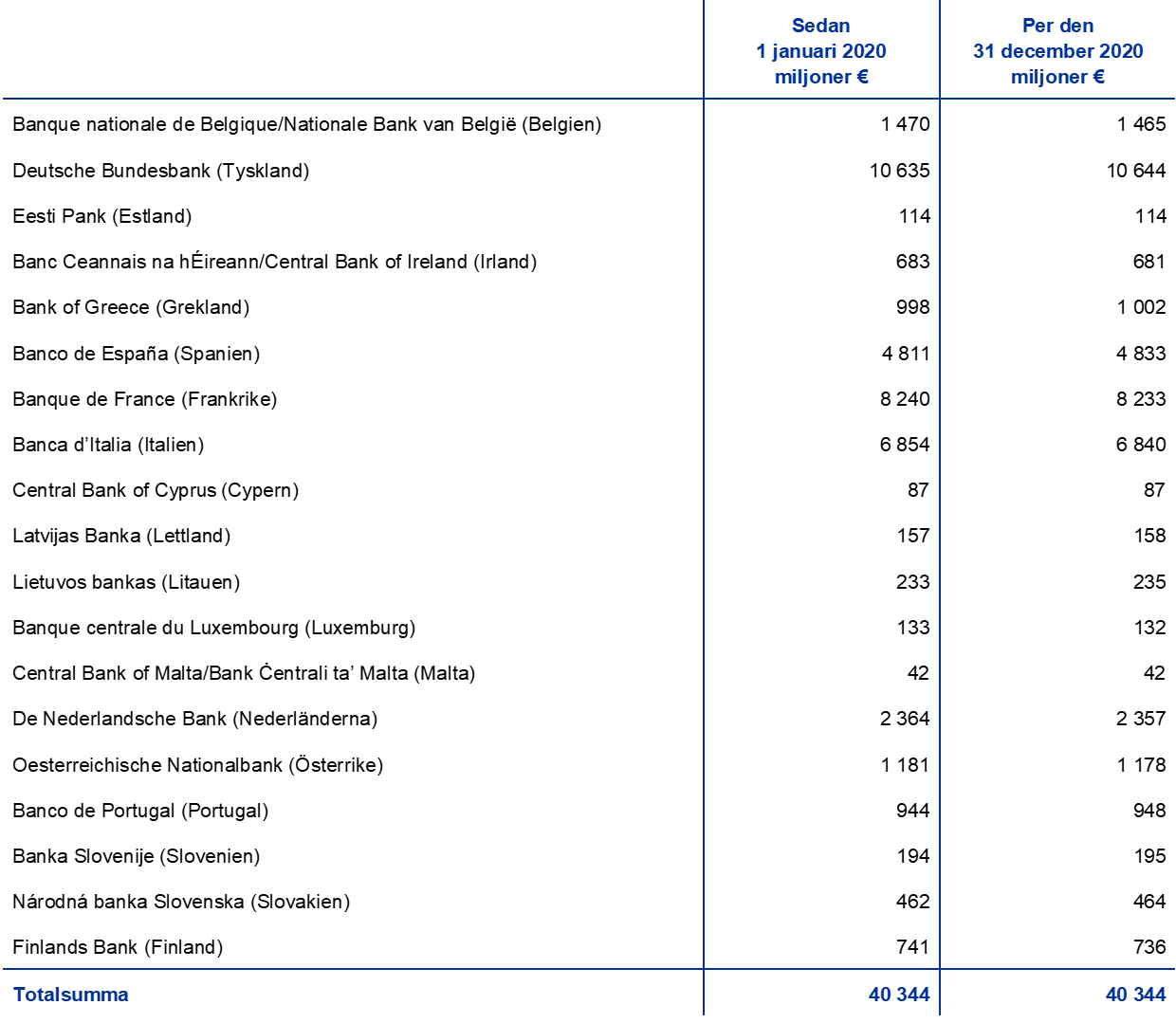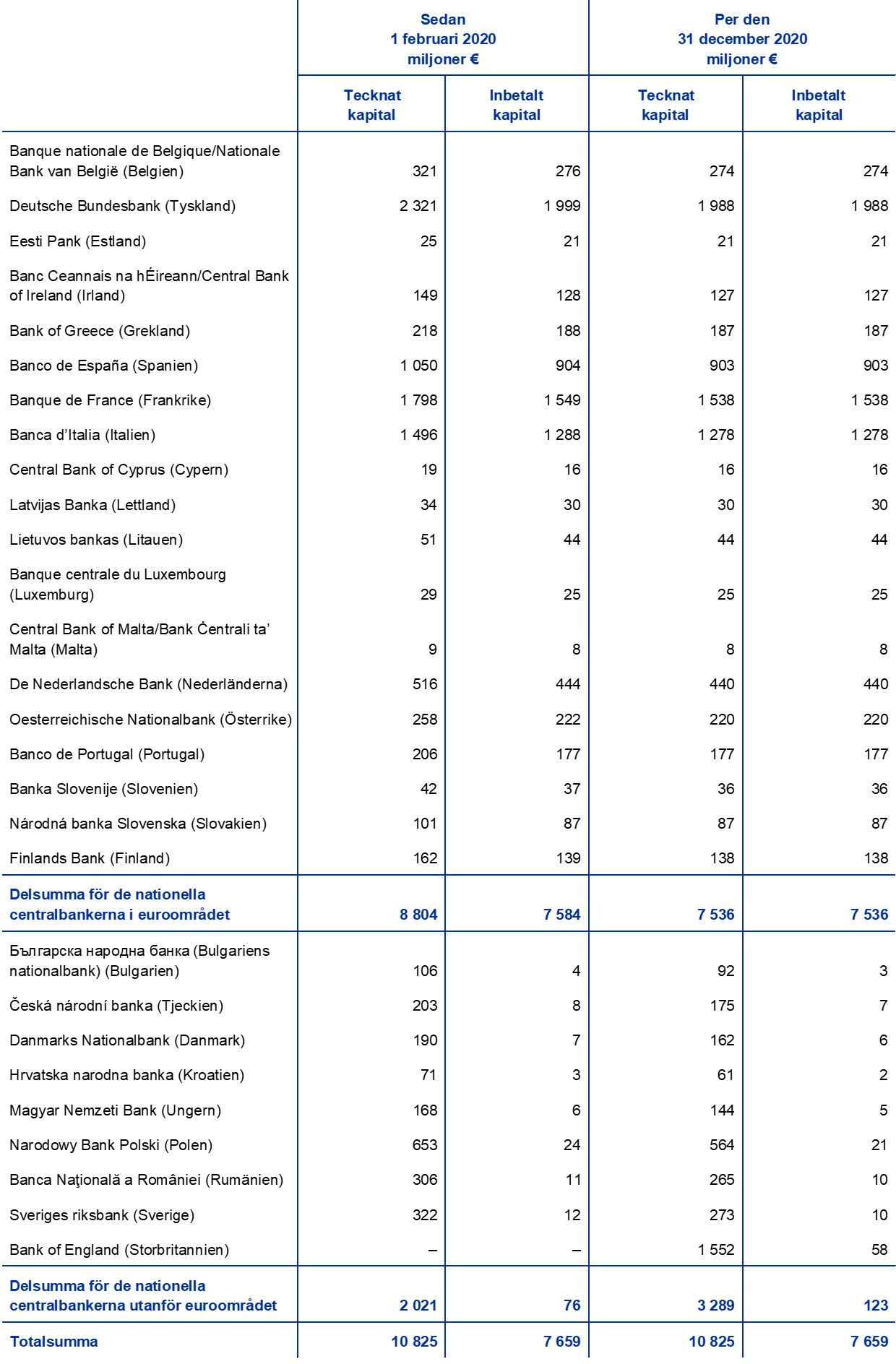 - Se pressmeddelandet från den 30 januari 2020 om ECB:s tecknade kapital efter Bank of Englands utträde ur ESBC.