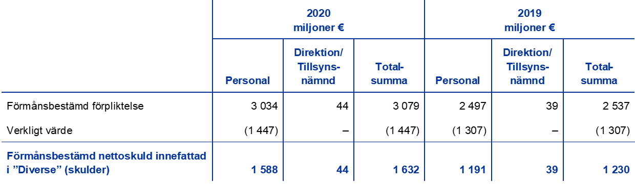 - Den angivna förmånspelaren i planen återspeglar endast det obligatoriska bidraget från ECB och personalen. Frivilliga inbetalningar av personalen till ett avgränsat pensionsbidragssystem uppgick 2020 till 186 miljoner euro (2019: 171 miljoner euro). Dessa bidrag investeras i fondtillgångarna och leder till ett motsvarande åtagande av samma värde.