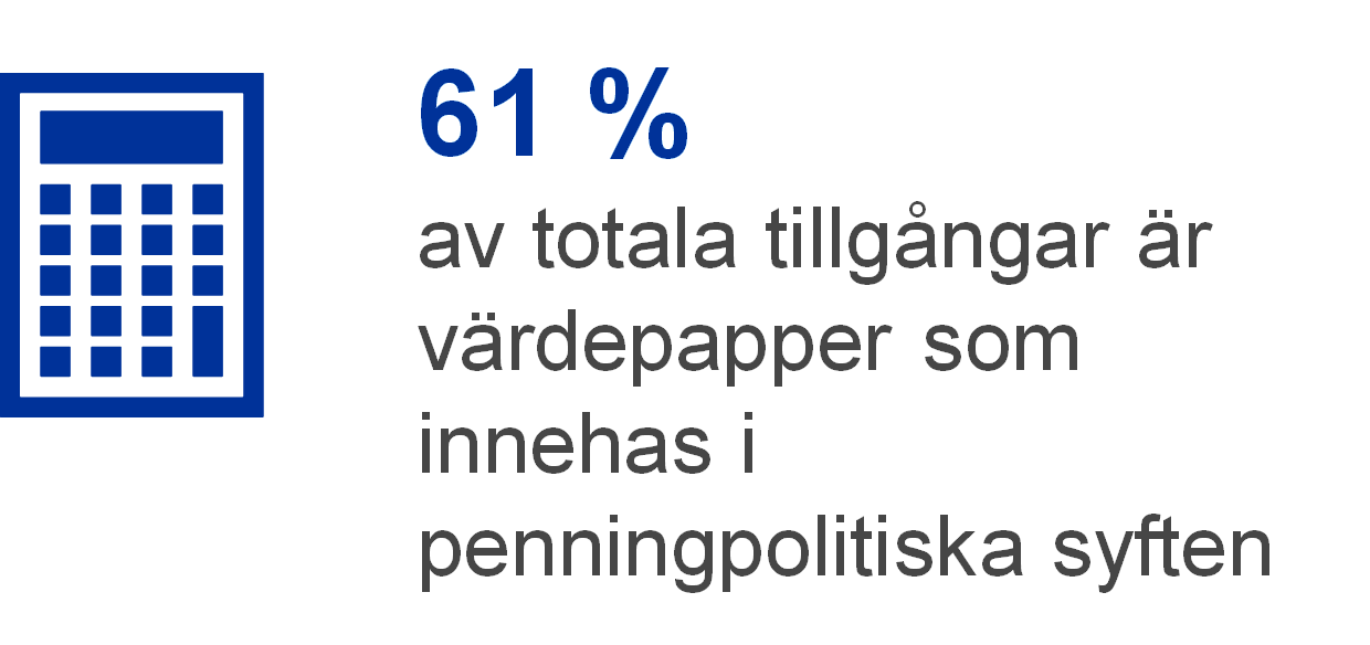 Värdepapper i euro som innehas för penningpolitiska syften utgjorde 61 procent av ECB:s totala tillgångar vid slutet 2020. I denna balanspost ingår värdepapper som ECB köpt inom programmet för värdepappersmarknaderna (SMP), de tre programmen för köp av säkerställda obligationer (CBPP1, CBPP2 och CBPP3), ABSPP, PSPP och PEPP.