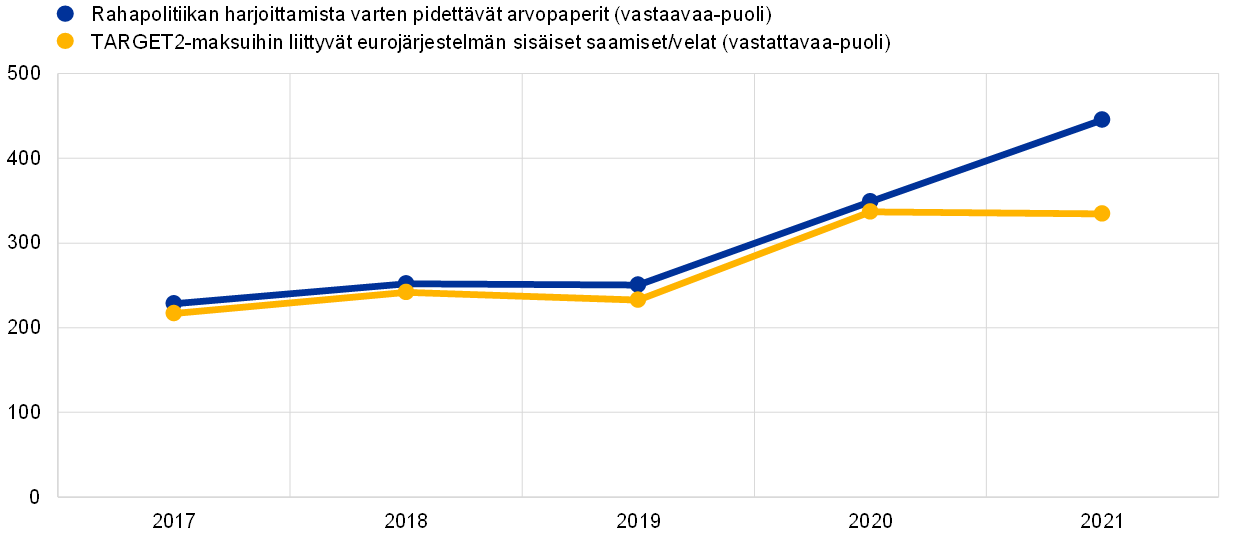 TARGET2-maksuihin liittyvät eurojärjestelmän sisäiset saamiset/velat ja rahapolitiikan harjoittamista varten pidettävät arvopaperit