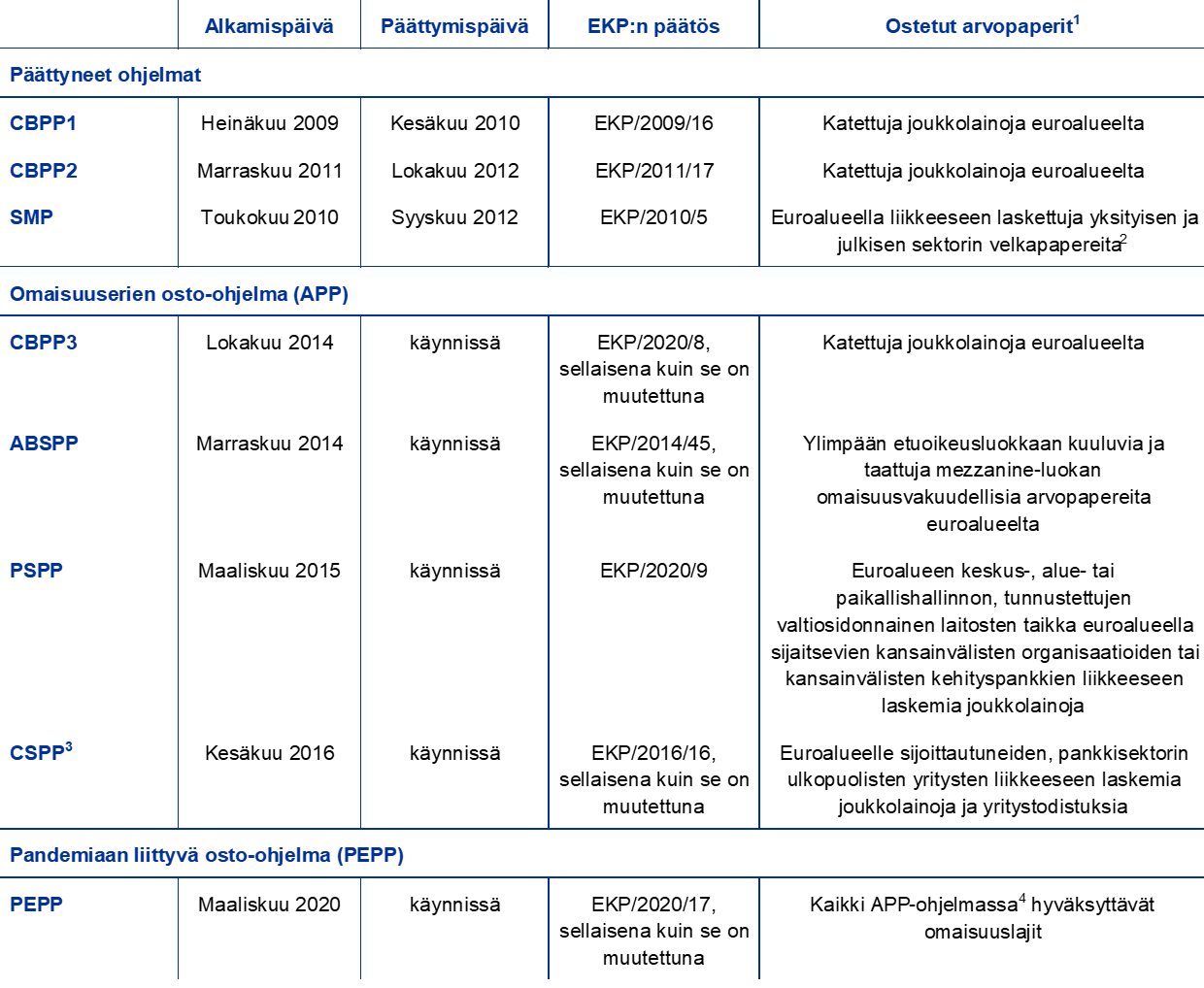 - Omaisuuserien osto-ohjelmasta kerrotaan tarkemmin EKP:n verkkosivuilla.