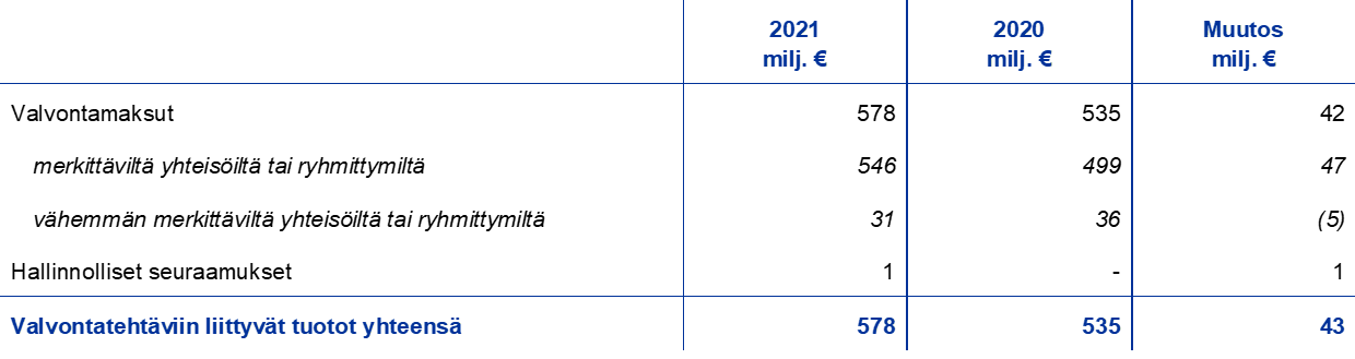 - EKP:n päätös vuotuisten valvontamaksujen kokonaismäärästä vuonna 2021 tehdään ja julkaistaan huhtikuun 2022 loppuun mennessä.