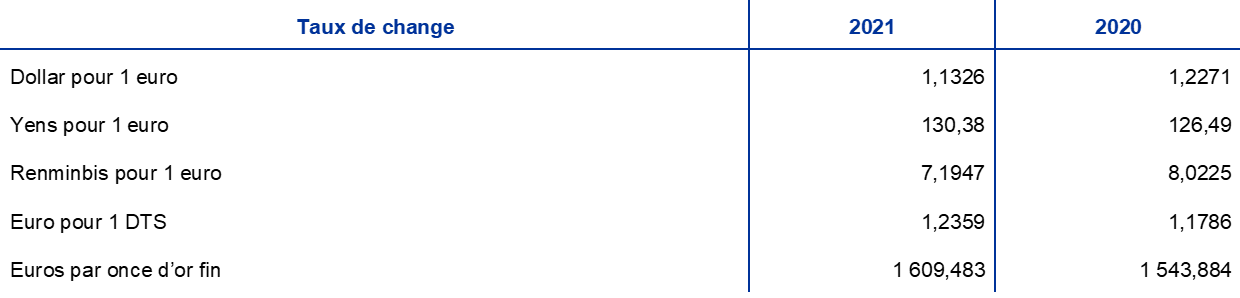 Principaux taux de change et prix de l’or au cours de la période 2017-2021