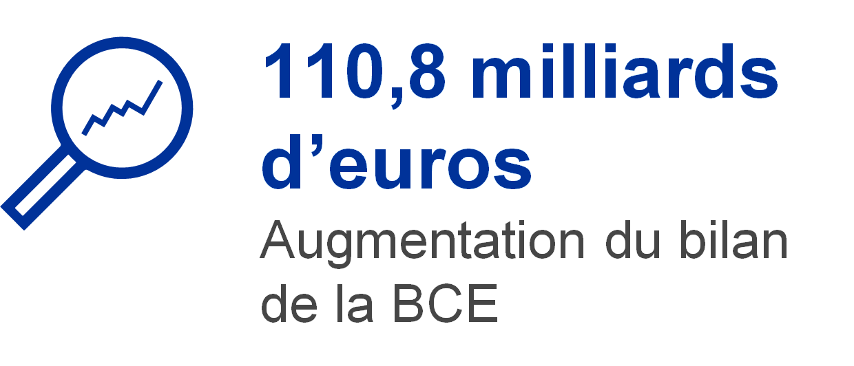 En 2021, la taille du bilan de la BCE s’est accrue de 110,8 milliards d’euros, à 680,1 milliards d’euros, du fait essentiellement de la part de la BCE dans les achats de titres effectués dans le cadre du PEPP et de l’APP. Ces achats se sont traduits par une hausse des titres détenus à des fins de politique monétaire, alors que leur règlement en espèces à travers les comptes TARGET2 a entraîné une augmentation correspondante des engagements intra-Eurosystème. Cette augmentation des engagements intra-Eurosystème a été plus que compensée par les espèces reçues des clients TARGET2 de la BCE n’appartenant pas à la zone euro, ce qui a également provoqué une hausse des autres engagements.