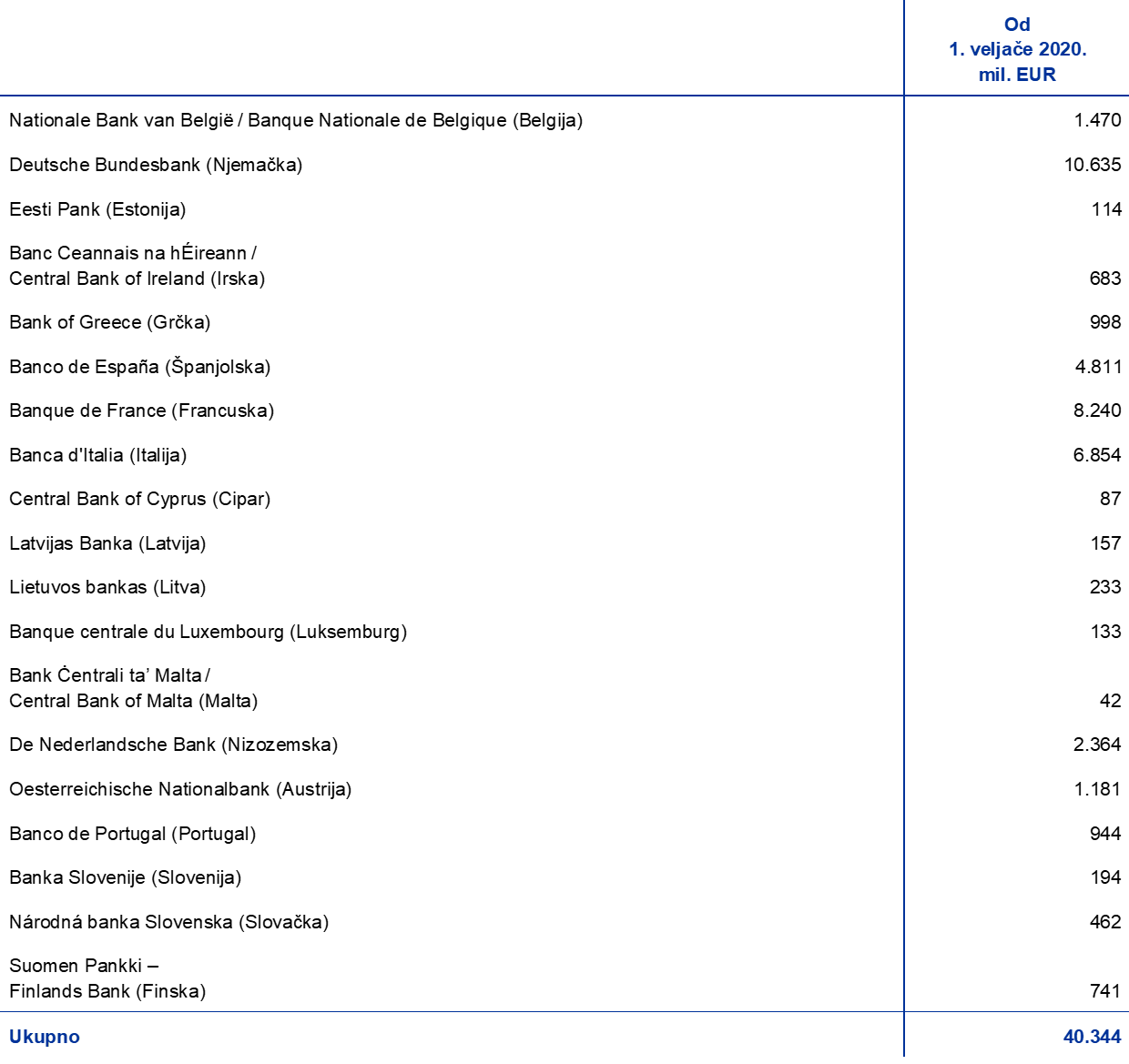 - Vidi priopćenje za javnost od 30. siječnja 2020. o upisanom kapitalu ESB‑a nakon izlaska središnje banke Bank of England iz ESSB‑a.