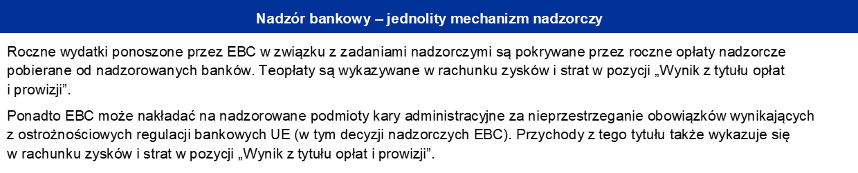 - Koszty ponoszone przez EBC w związku z wykonywaniem zadań nadzorczych są pokrywane przez roczne opłaty pobierane od nadzorowanych banków. Więcej informacji można znaleźć na stronie internetowej EBC poświęconej nadzorowi bankowemu.