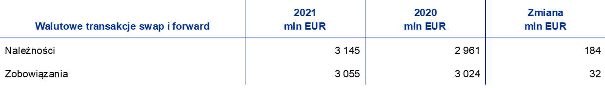 - Jeżeli na koniec roku środki pieniężne otrzymane jako zabezpieczenie pozostają niezainwestowane, odnośne transakcje wykazuje się w bilansie (zob. nota 9 „Pozostałe zobowiązania wobec instytucji kredytowych ze strefy euro w euro” i nota 11 „Zobowiązania wobec nierezydentów strefy euro w euro”).