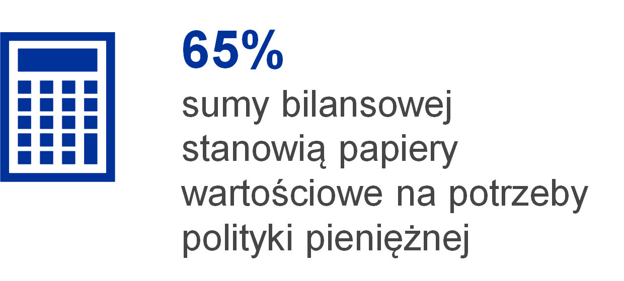 Na koniec 2021 papiery wartościowe na potrzeby polityki pieniężnej nominowane w euro stanowiły 65% sumy bilansowej EBC. W tej pozycji EBC wykazuje papiery nabyte w ramach programu dotyczącego rynków papierów wartościowych (SMP), trzech programów skupu obligacji zabezpieczonych (CBPP1, CBPP2 i CBPP3), programu ABSPP, programu PSPP i programu PEPP.