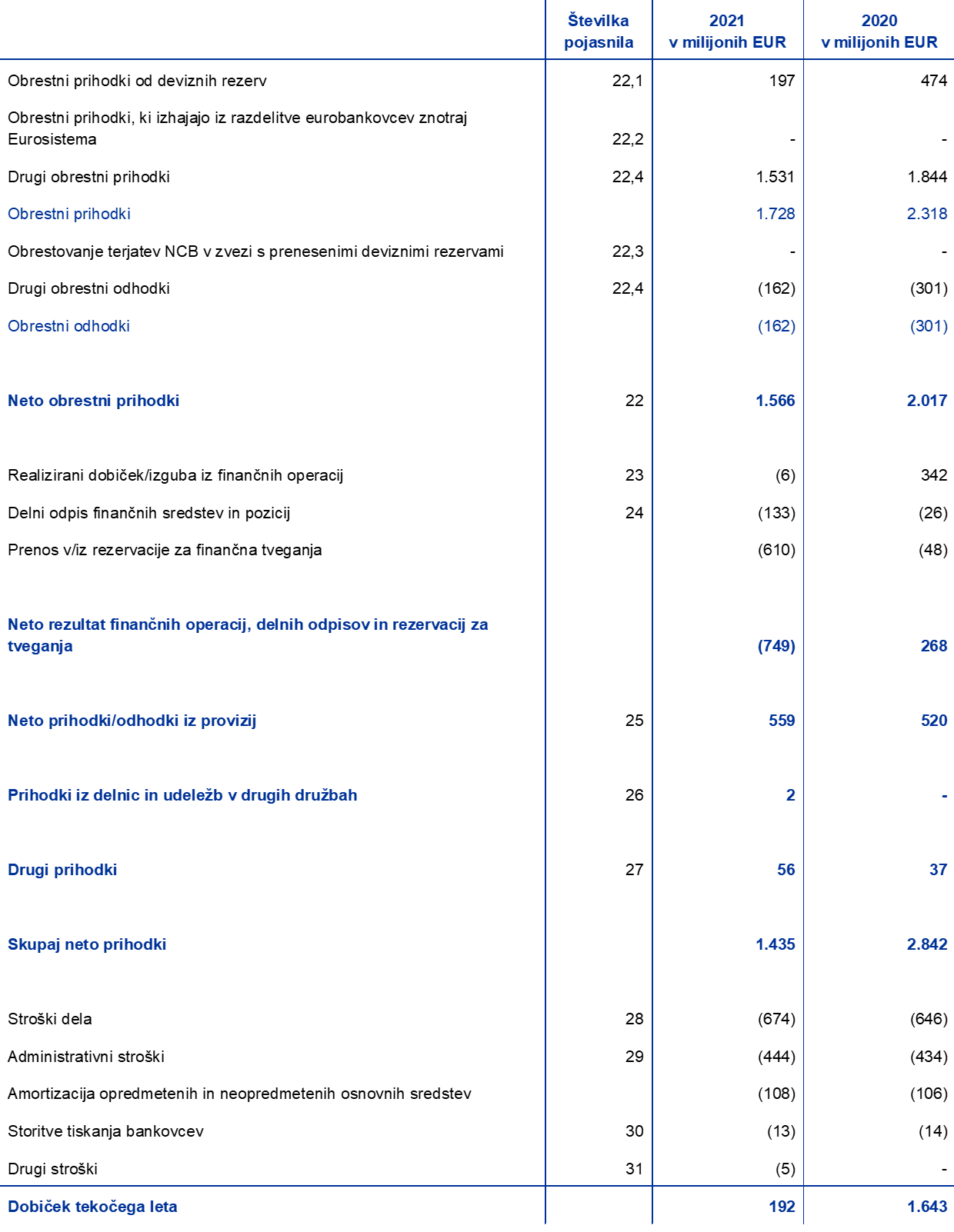 Opomba: »Drugi prihodki in odhodki« obsegajo »Neto prihodke/odhodke iz provizij«, »Prihodke iz delnic in udeležb v drugih družbah«, »Druge prihodke« in »Druge stroške«.
