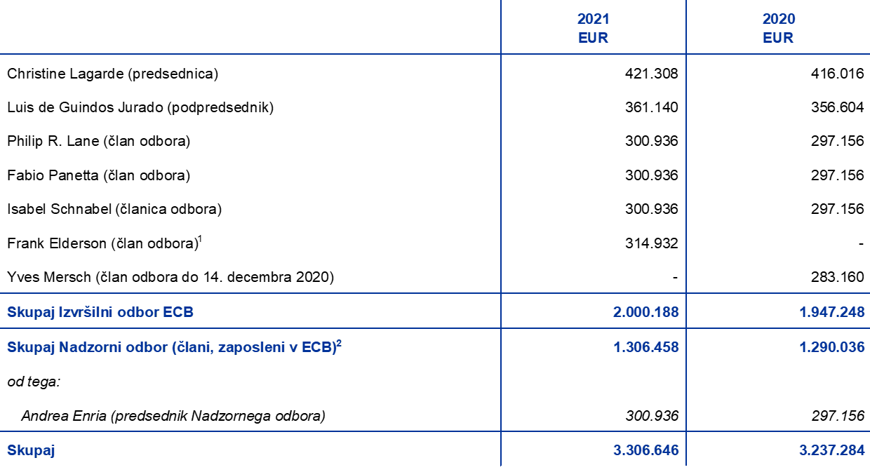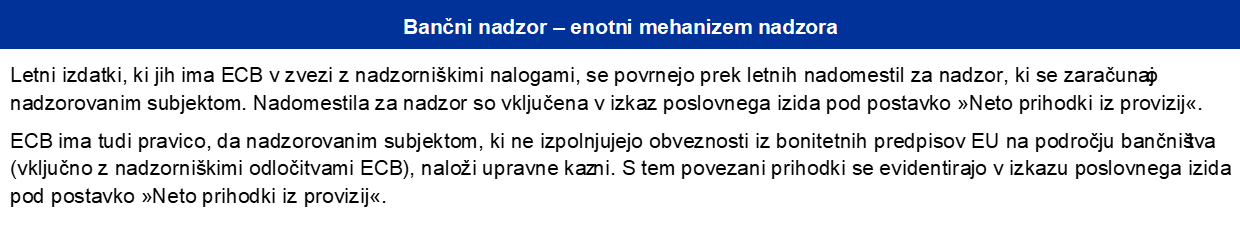 - Glede neto zneska, ki bremeni izkaz poslovnega izida v zvezi s pokojninskim sistemom za sedanje člane Izvršnega odbora in sedanje člane Nadzornega odbora, ki so zaposleni v ECB, glej pojasnilo št. 13.3 »Razno«.