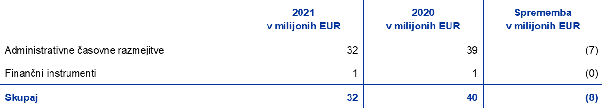 Leta 2021 je ta postavka vključevala povračilo upravnih kazni, ki jih je ECB v preteklih obdobjih naložila trem nadzorovanim subjektom znotraj iste skupine, za katere je sodišče deloma razveljavilo relevantne sklepe (glej pojasnilo št. 25 »Neto prihodki/odhodki iz provizij«).
