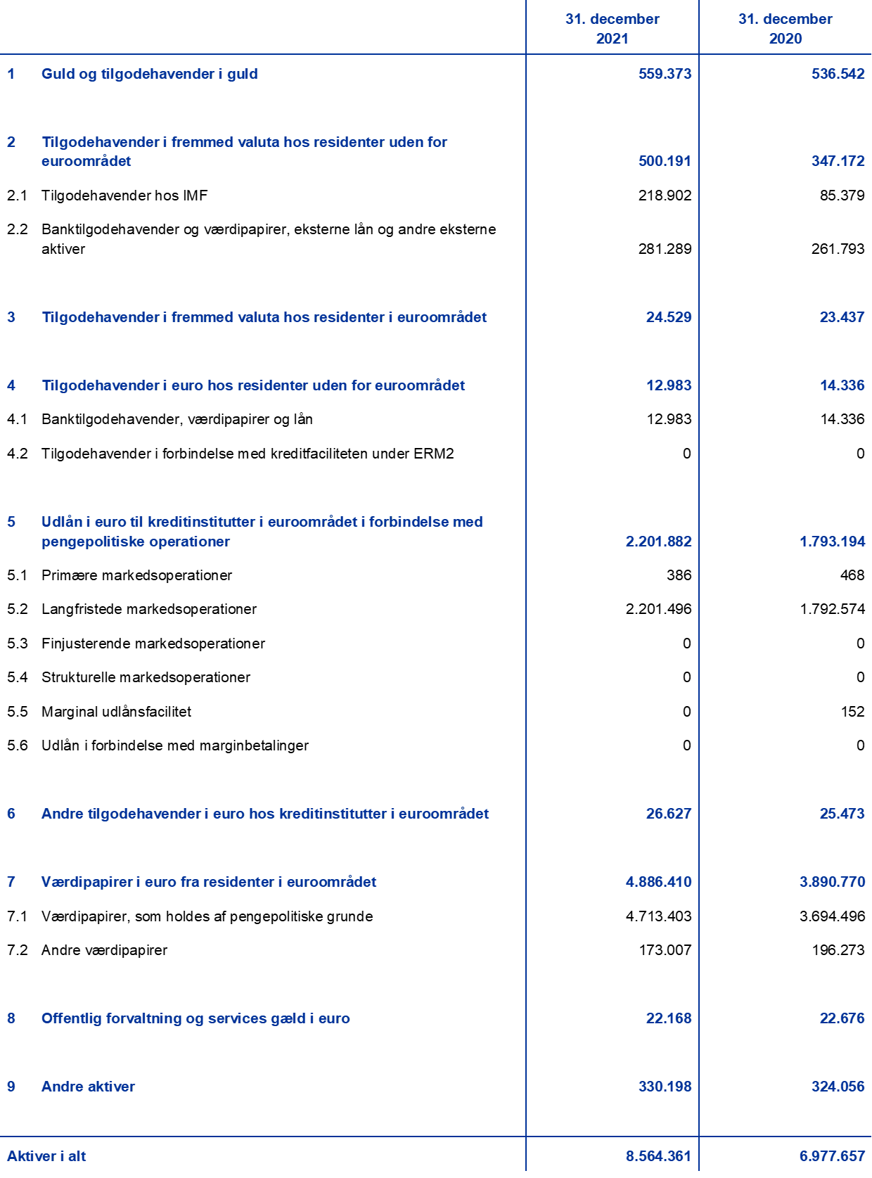 Eurosystemets konsoliderede balance pr. 31. december 2021