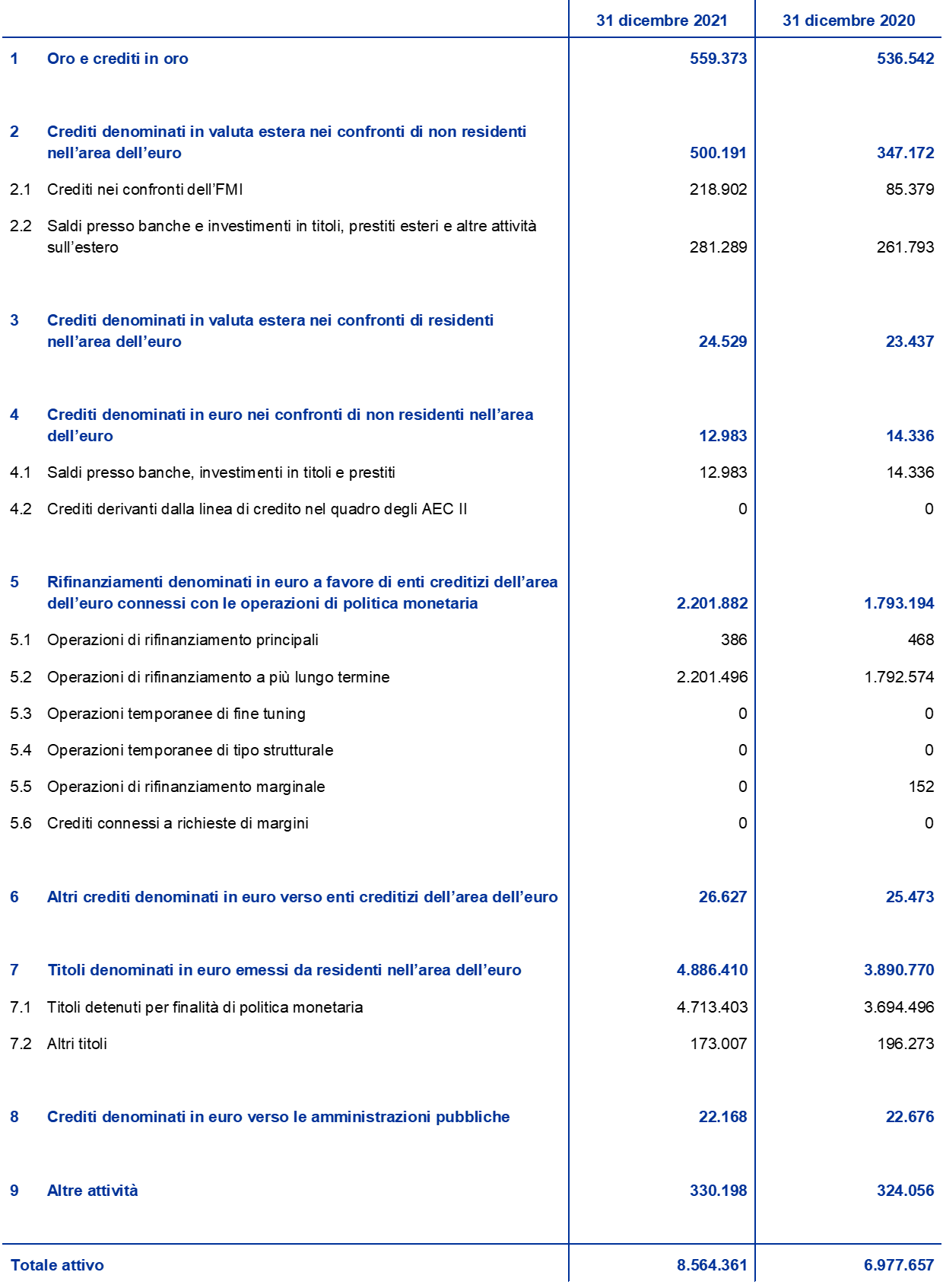 Stato patrimoniale consolidato dell’Eurosistema al 31 dicembre 2021