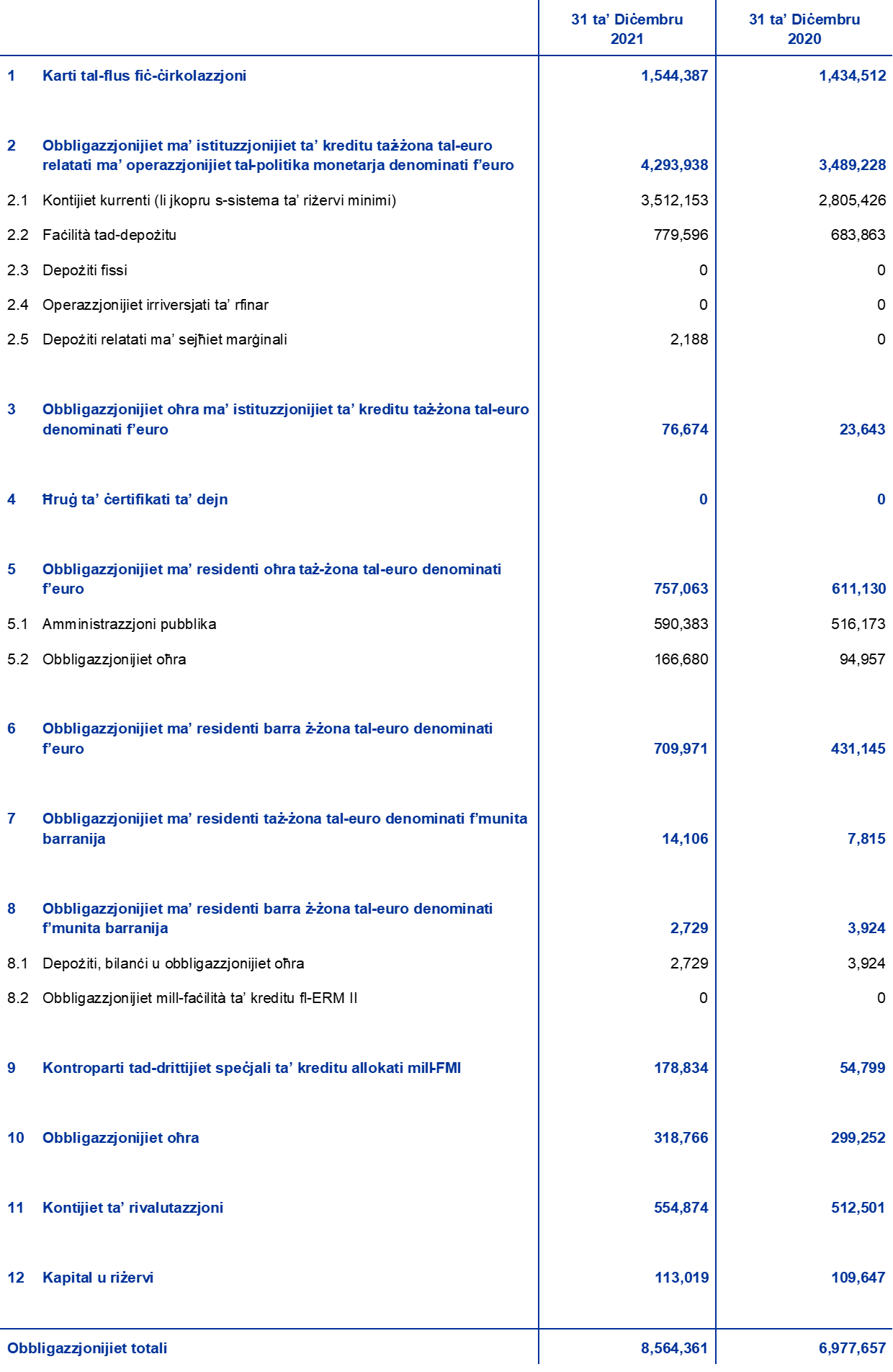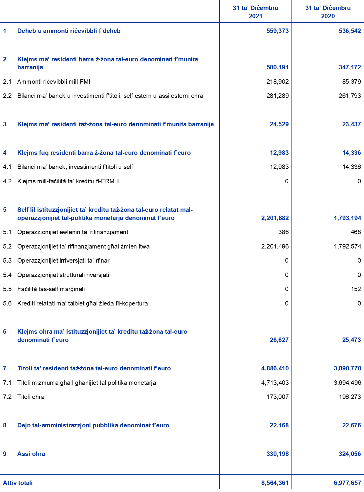 Karta tal-bilanċ konsolidata tal-Eurosistema sal-31 ta’ Diċembru 2021