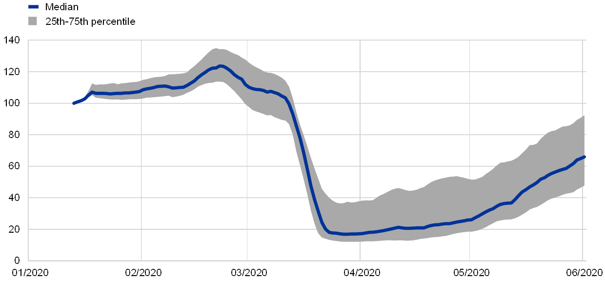 Stock markets around the world have tumbled since late February, when international investors began to worry about the spread of the coronavirus outside of China and its impact on the global economy. Although equity markets have partially recovered since then, the Euro Stoxx 50 lost 12.3% in the week ending on 28 February, its largest weekly percentage loss since the global financial crisis in 2008. The S&P 500 declined by more than 11% in an equally catastrophic week. Overall, equity markets in the euro area and the United States lost around 35% of their value between their peak on 19 February and their trough on 23 March.