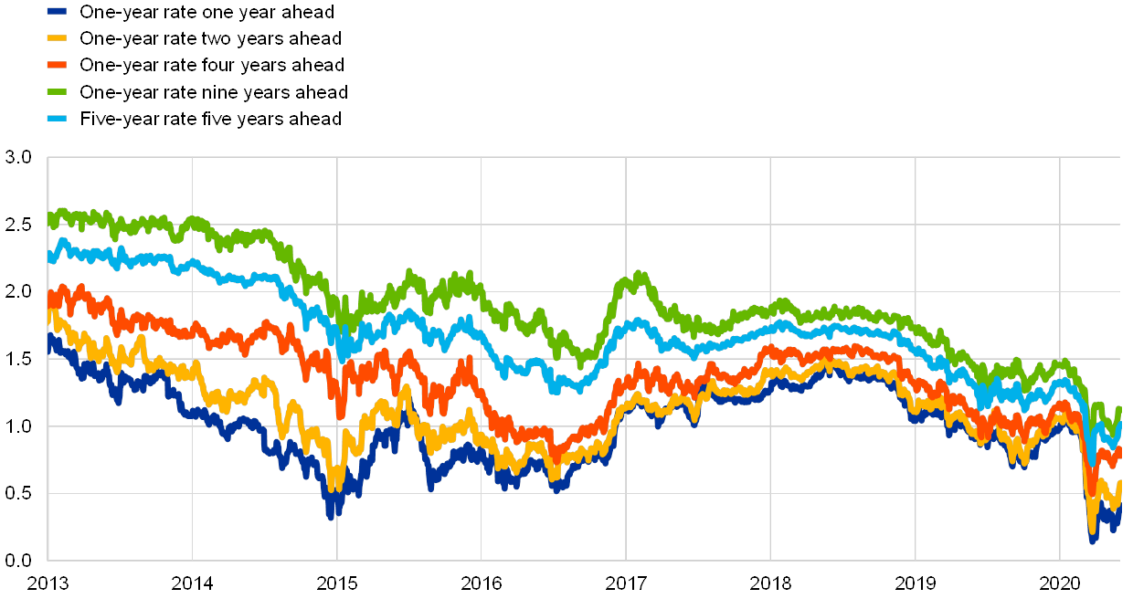 Although financial conditions in the euro area have loosened somewhat since the Governing Council’s meeting in March 2020, they have not returned to the levels seen before the global spread of COVID-19. Over the review period (12 March 2020 to 3 June 2020) the forward curve of the euro overnight index average (EONIA) shifted upwards. Its inversion at short maturities is still present, albeit less so than on 12 March, signalling that market participants’ expectations of further policy rate cuts have diminished and shifted further out into the future. Despite the monetary policy accommodation provided via the PEPP and other policy measures, long-term euro area sovereign bond yields increased over the review period. Prices of risky assets partly recovered from the losses incurred during February and March, mainly against the backdrop of an improvement in global risk sentiment and the perception that tail risks of an imminent global crisis have faded to some extent. In foreign exchange markets, the euro remained broadly stable in trade-weighted terms, with volatility in bilateral exchange rates reflecting uncertainty surrounding the COVID-19 pandemic.