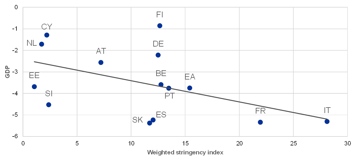 In addition to the fiscal support granted to their economies, euro area countries have provided sizeable loan guarantee envelopes to bolster firms’ liquidity. In total, these guarantees amount to around 20% of GDP for the euro area as a whole, but the size of the envelopes differs substantially across countries. The loan guarantees constitute contingent liabilities for governments and will lead to additional public spending in the amount that they are called on. However, at the current juncture it is very difficult to quantify what that amount will be in the medium and long term.